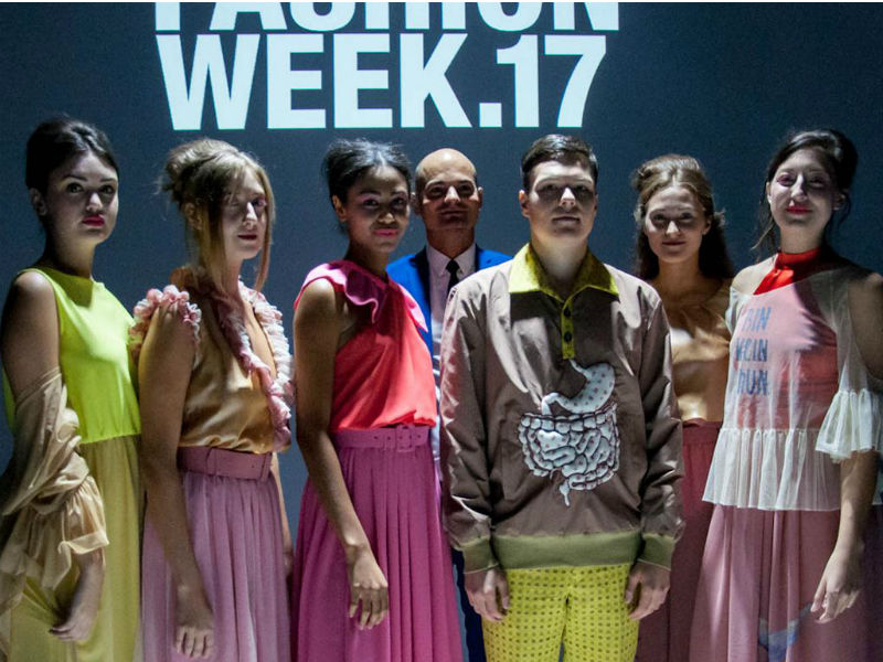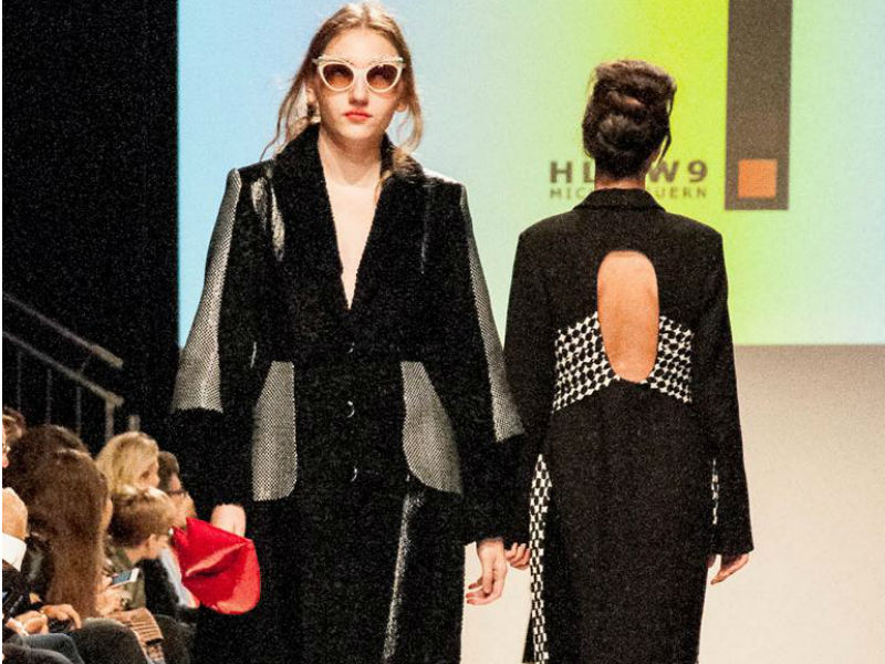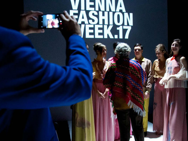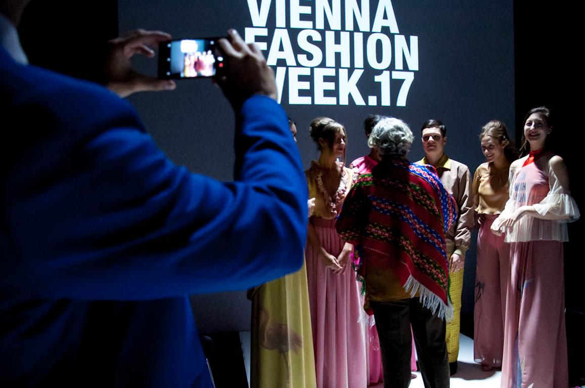 Trotz Regen kamen Hunderte zur Show der Modeschule Michelbeuern bei der MQ Vienna Fashion Week. Das Zelt war gerammelt voll.