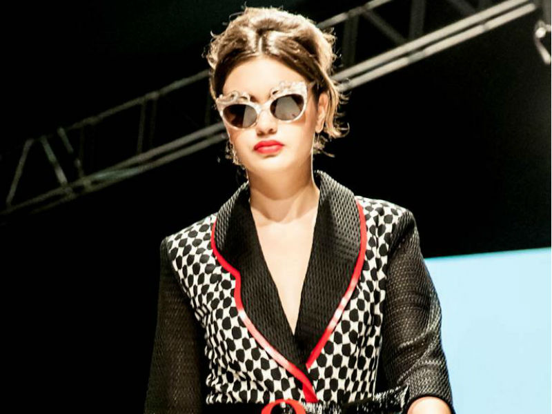 Voyage surréaliste war der Titel der Show. Von den Facetten der vierziger und fünfziger Jahre, dem Charme der Roaring Sixties bis hin zu den wilden Siebzigern wurde das Publikum in ein nostalgisches Reich der Fantasie entführt, das zugleich futuristisch und unwirklich erschien. Die Designer, die uns bei unseren Entwürfen inspirierten waren – um nur einige zu nennen – Schiaparelli, Dior, Simons, Courreges , Cardin, Missoni.