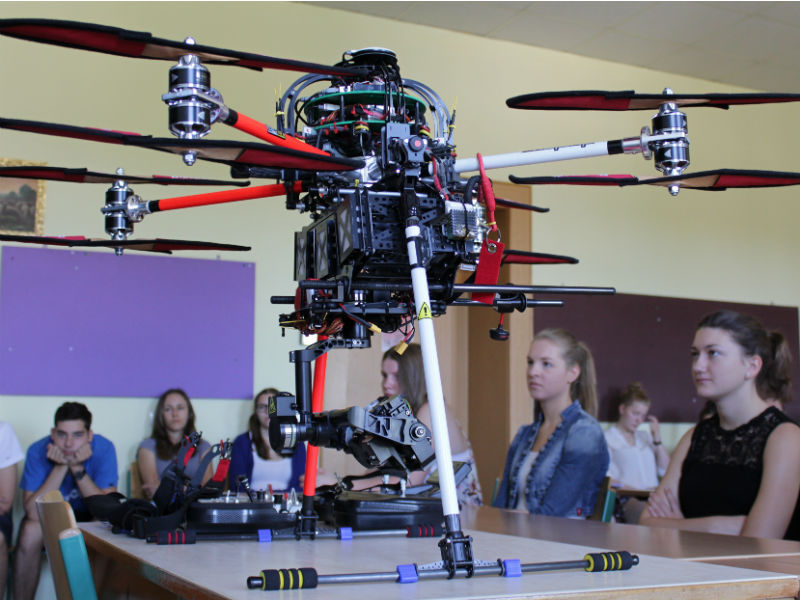 So veranstaltete die Fa. „Movieworks“ gemeinsam mit Prof. Kurt Haspel und Schülern der HLK Freistadt einen Workshop zum Thema Filmen und Fotografieren mit professionellen Drohnen. Neben den rechtlichen und den technischen Grundlagen ging es auch um Themen wie geeignete Kameras für solche Flugaufnahmen sowie Perspektiven und Kameraaufhängungen.
