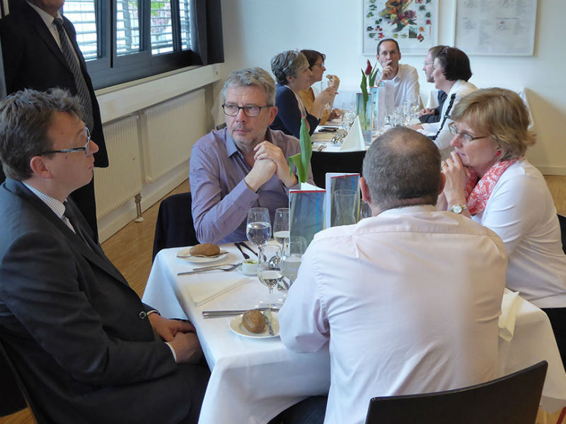 „Der durchgehende Fokus auf eine gleichberechtigte attraktive Ausbildung für junge Frauen und Männer, welcher fest in unserer Schulphilosophie verankert ist, bildet dabei das verbindende Element an unserer Schule“, so Direktorin Ettl. Vom hohen Sprachniveau unserer SchülerInnen, deren Commitment zu ihrer Ausbildung und deren Professionalität im Gäste-Empfang konnten sich die Gäste bei einer französischsprachigen Führung von mehreren SchülerInnen-Teams gleichzeitig durch das moderne Schulgebäude der Hertha Firnberg Schulen überzeugen. Ein kulinarisches Highlight dieser Veranstaltung stellte das von Schülerinnen und Schülern zubereitete Mittagsmenü unter der Leitung von Johann Reisinger (europaweit bekannter Vertreter der Naturküche und Proponent der Slowfood-Bewegung) dar.