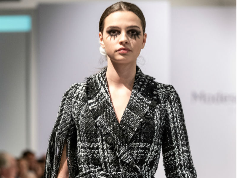 Fashion_Show_6: Sandra Kauder präsentiert ein Modell der Abschlusskollektion „Cocos dark side“ von Misa Marinkovic