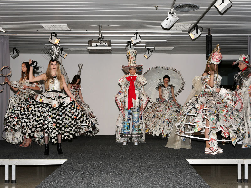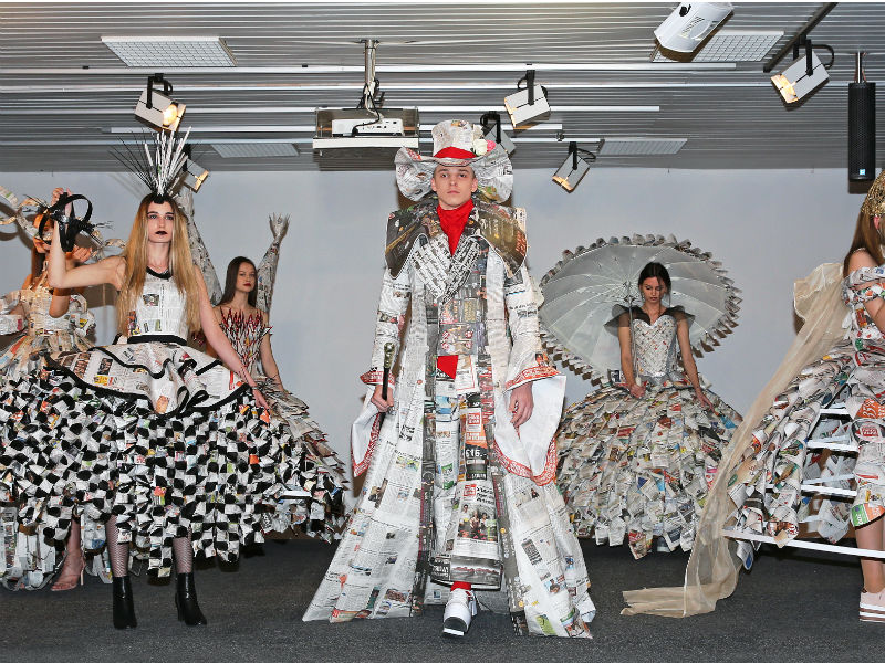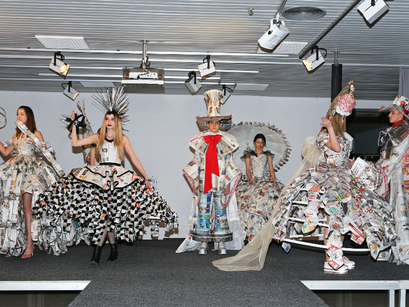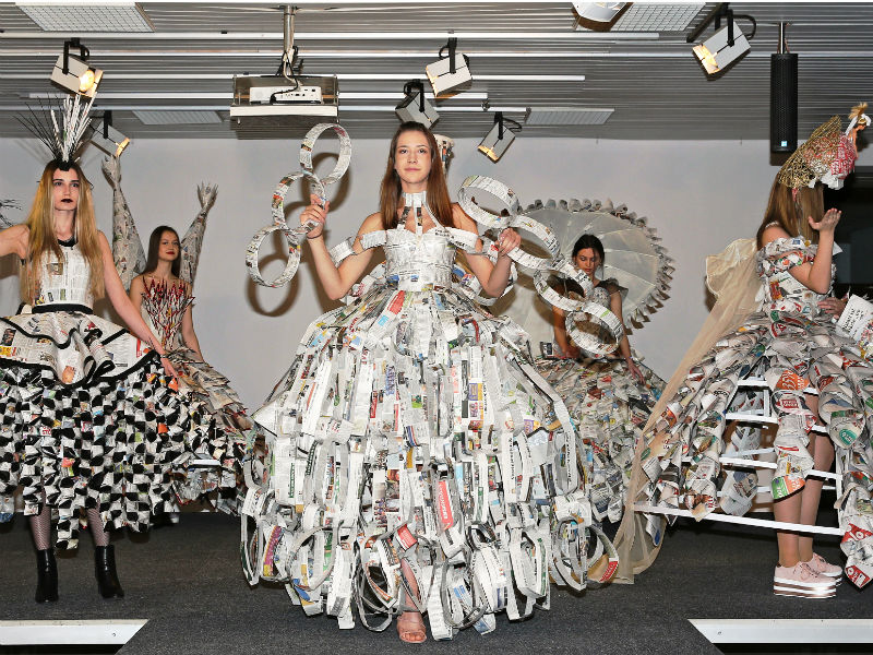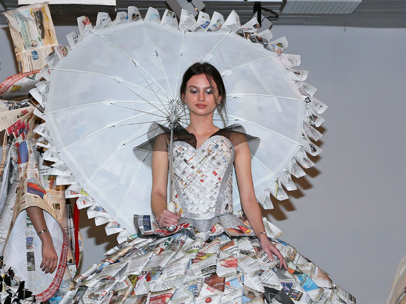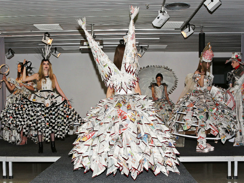 Schülerinnen und Schüler der HBLA Lentia haben 7 bühnenreife Modelle aus Zeitungspapier kreiert und diese dann mit Live-Musikbegleitung der Öffentlichkeit präsentiert. Auftraggeber war die Bezirksrundschau, die anlässlich des 10-jährigen Jubiläums diese Veranstaltung initiierte.