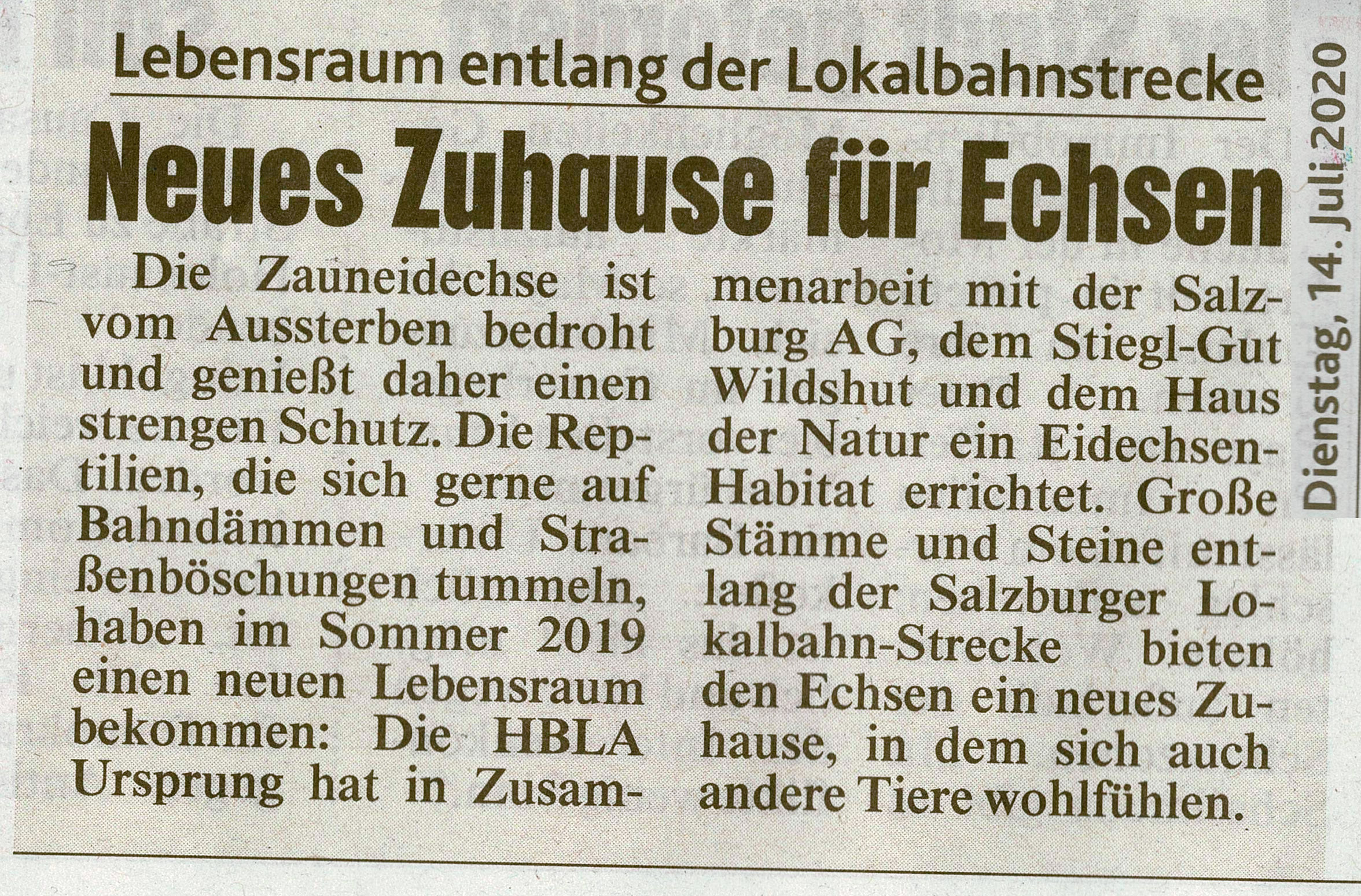 Lebensraum entlang der Lokalbahnstrecke - Neues Zuhause für Echsen (Kronenzeitung 14. Juli 2020)